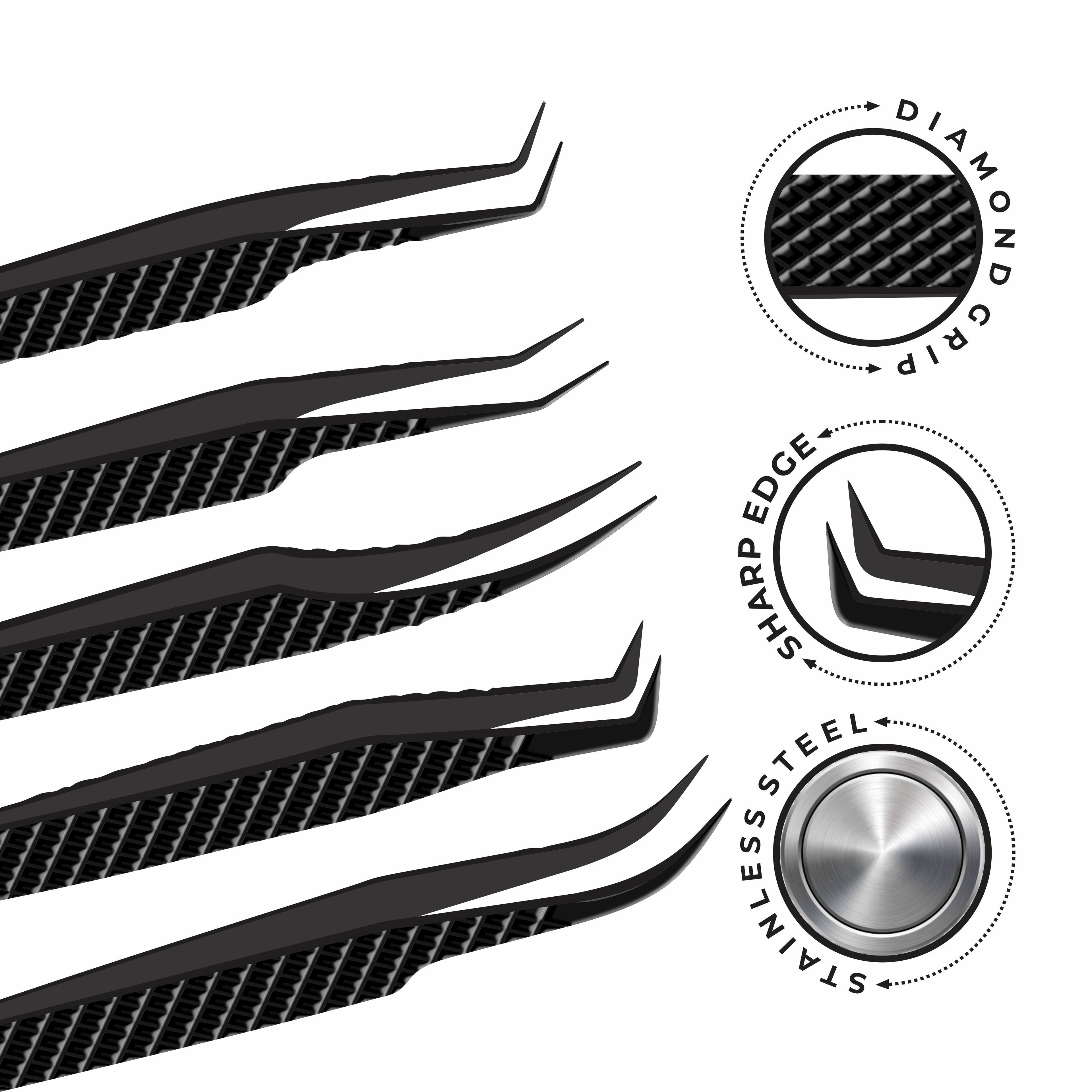 • QUALITY - Our set of lash tweezers are the best for any job. Lash Tweezers for eyelash extensions are made up of perfect quality rust free stainless steel and do not bend even after continuous use and last a long time.