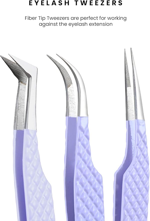 Fiber Tip Lash Tweezers- Pack of 3 Eyelash Extension Tweezers Professional- Lash Tweezers. (Mauve Purple)