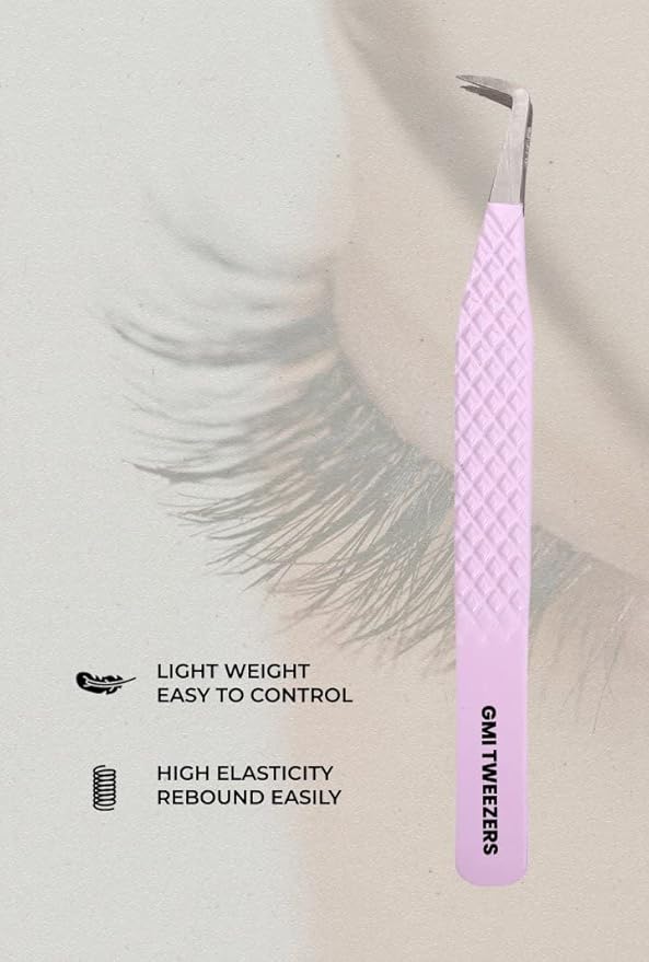 GMI Lash Tweezers - Set of 5 Stainless Steel Eyelash Extension Tweezers - Multipurpose for Individual Extensions (Pink)